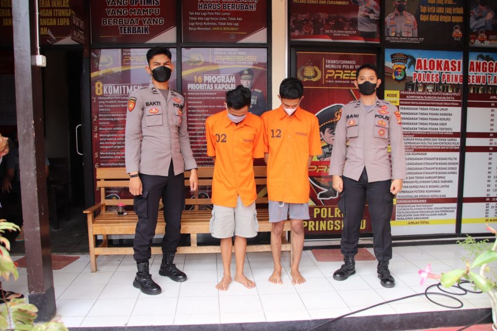 PRINGSEWU (Realita)- Dua terduga pelaku penyalahguna narkotika jenis ganja sintetis berinisial DAP (21) dan YRT (19), warga kecamatan Ambarawa Kabupaten Pringsewu berhasil diringkus Tim cobra satnarkoba Polres Pringsewu, Sabtu (2/10/21).