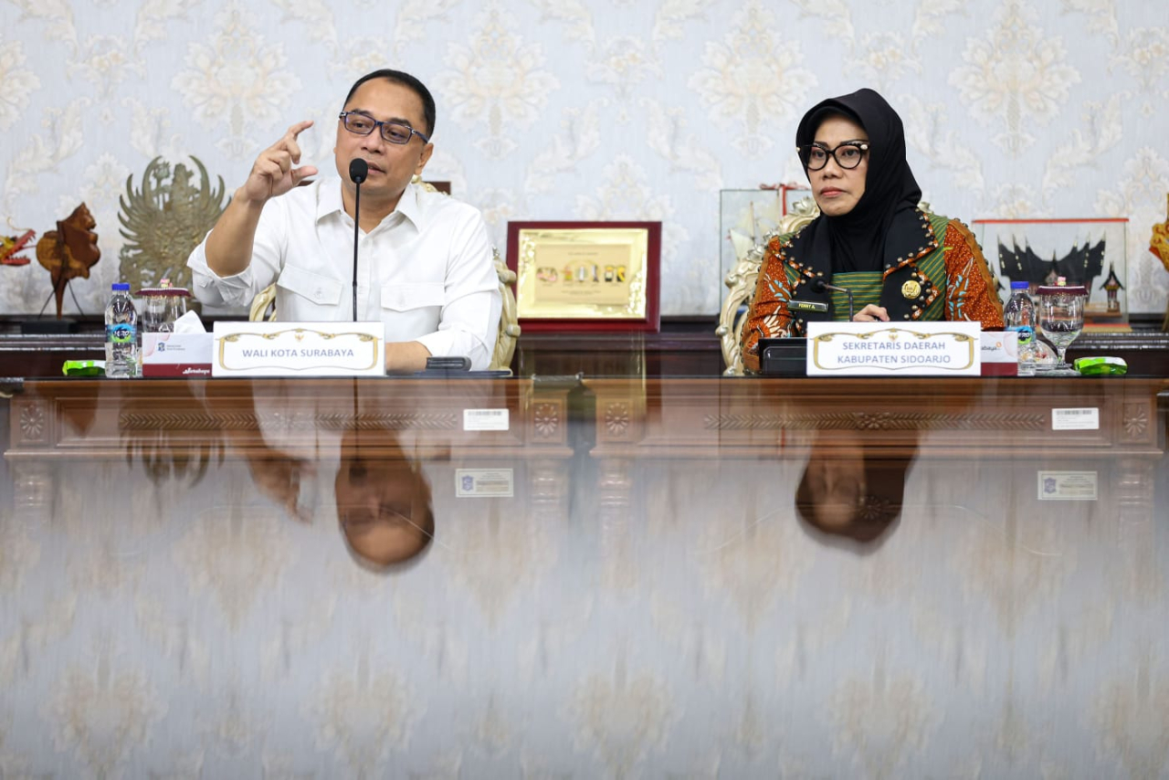 SURABAYA (Realita)- Pemerintah Kota (Pemkot) Surabaya menjadi rujukan Pemerintah Kabupaten (Pemkab) Sidoarjo dalam pengelolaan anggaran dan optimalisasi pajak daerah. Hal tersebut terungkap dalam kunjungan kerja Sekretaris Daerah (Sekda) Kabupaten Sidoarjo, Fenny Apridawati, bersama jajaran ke Ruang Sidang Wali Kota Surabaya, Kamis (8/1/2026).