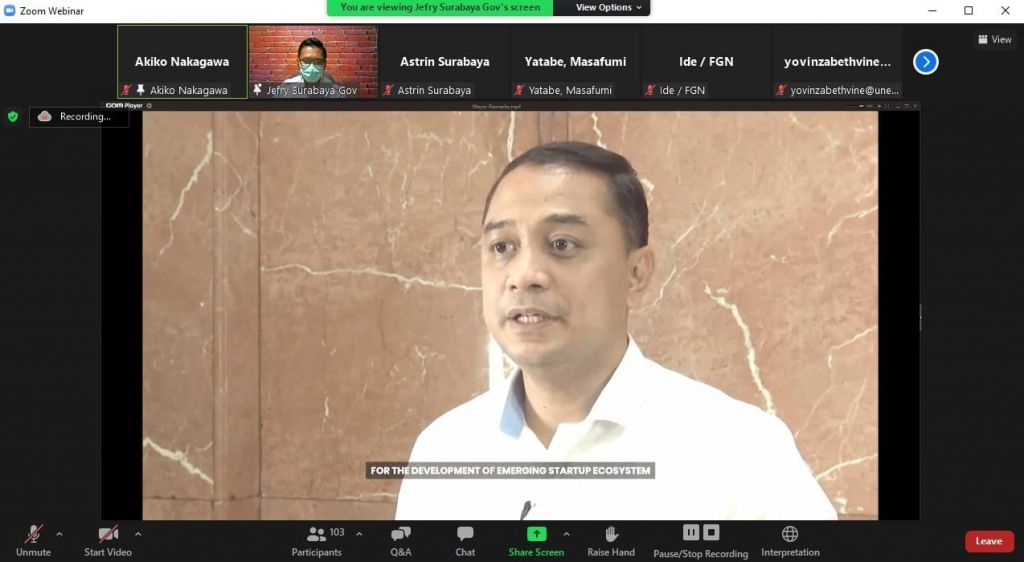 Deputi Direktur Jenderal Departemen Pengembangan Ekonomi dan Direktur untuk Pengembangan Sektor Swasta, JICA, Hironobu Murakami mengatakan, workshop online ini adalah bagian dari pilot program JICA di bidang pengembangan startup. Dia menambahkan, Fukuoka adalah kota terdepan dalam pengembangan startup di Jepang. Dan Surabaya punya banyak kesamaan dengan Fukuoka.