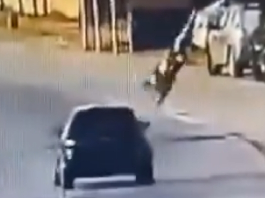 Insiden tersebut, yang terekam oleh kamera keamanan dan beredar di media sosial dalam beberapa jam terakhir, menunjukkan momen ketika salah satu pelaku kejahatan menerjang pengendara sepeda motor yang sedang melintas di jalan ditabrak oleh mobil yang dikemudikan oleh seorang petugas polisi. Setelah benturan, pencuri tersebut terlempar beberapa meter sebelum mendarat di bahu jalan.
