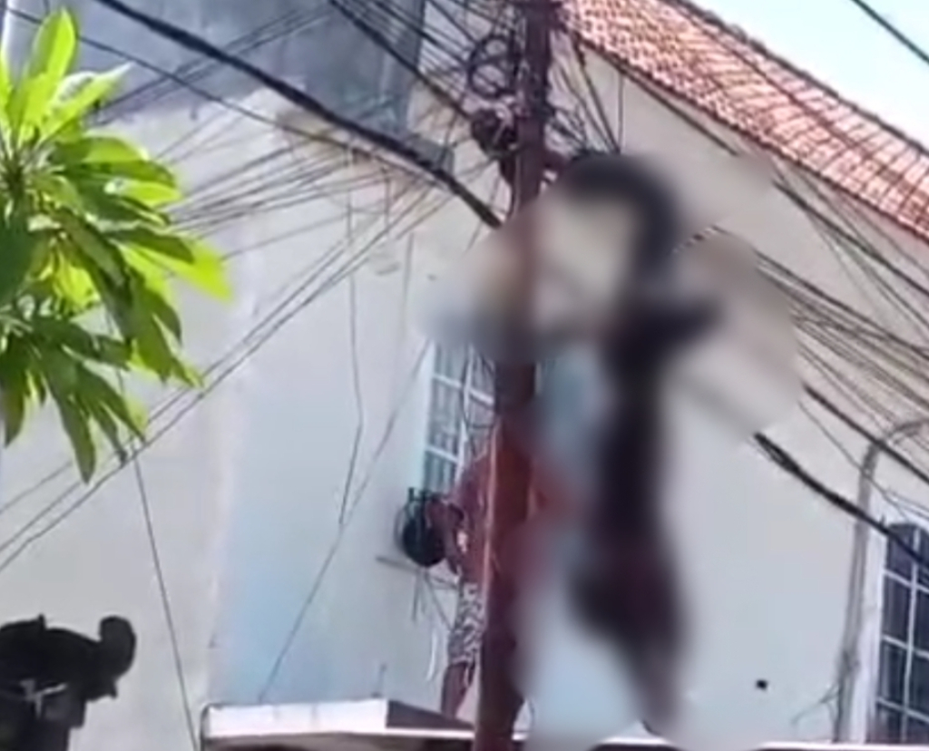 “Tiba-tiba saksi (Dedi) mendengar suara letupan dan teriakan korban. Saat saksi menengok ke atas dan melihat korban sudah tergantung dengan kaki menyangkut di kabel WiFi,” beber Iptu Azel.