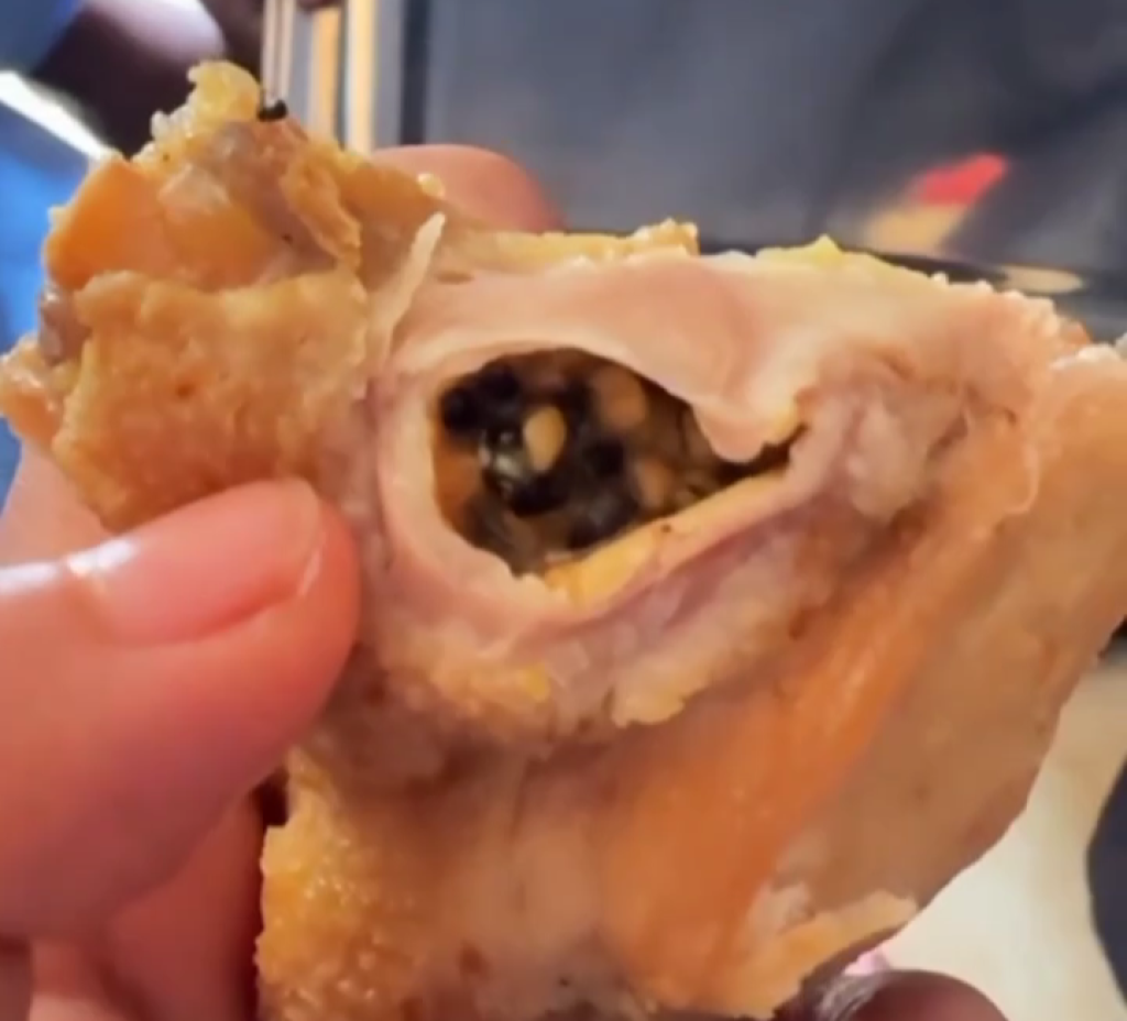 REMBANG (Realita)- Menu MBG di Rembang masih ada tembolok kantung makan ayam diantara leher dan dada ayam.