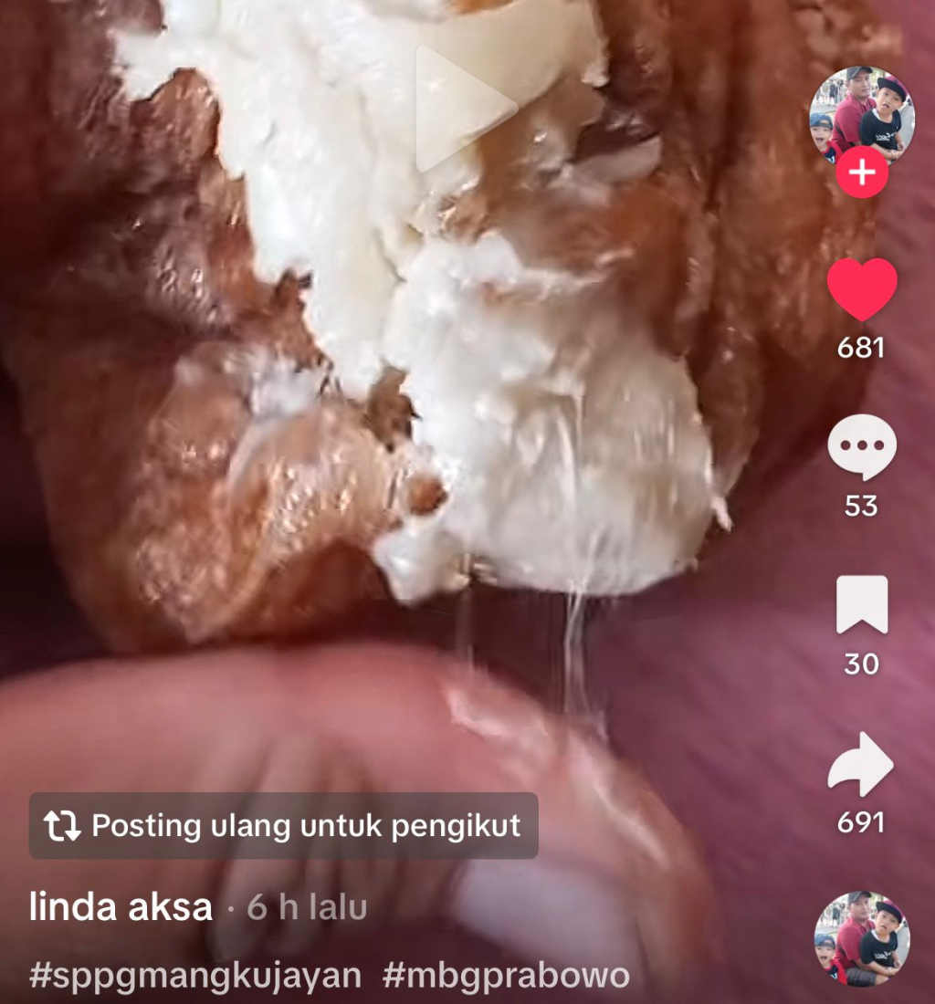 Hal ini terungkap dalam postingan akun Tiktok @ajiaksa yang diunggah 6 hari lalu. Dalam postingan kurang dari 1 menit itu, terlihat pemosting tengah memperlihatkan kondisi Tahu Bakso yang telah berlendir dan mengeluarkan bau basi sebelum dimakan. Tahu Bakso ini sendiri merupakan menu MBG yang diterima oleh anaknya saat sekolah. Dalam kolom komentar pemosting menyebut menu tersebut berasal dari SPPG Mangkujayan.
