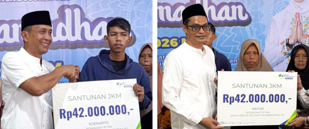 Kepala BPJS Ketenagakerjaan Cabang Bojonegoro, Denny Herliyantono, menyampaikan, santunan JKM tersebut diberikan kepada ahli waris Soenarto dan Natur, Perangkat RT/RW Desa Meduri, Kecamatan Margomulyo. ‘’Masing-masing menerima santunan JKM sebesar Rp 42 juta,” jelas Denny.