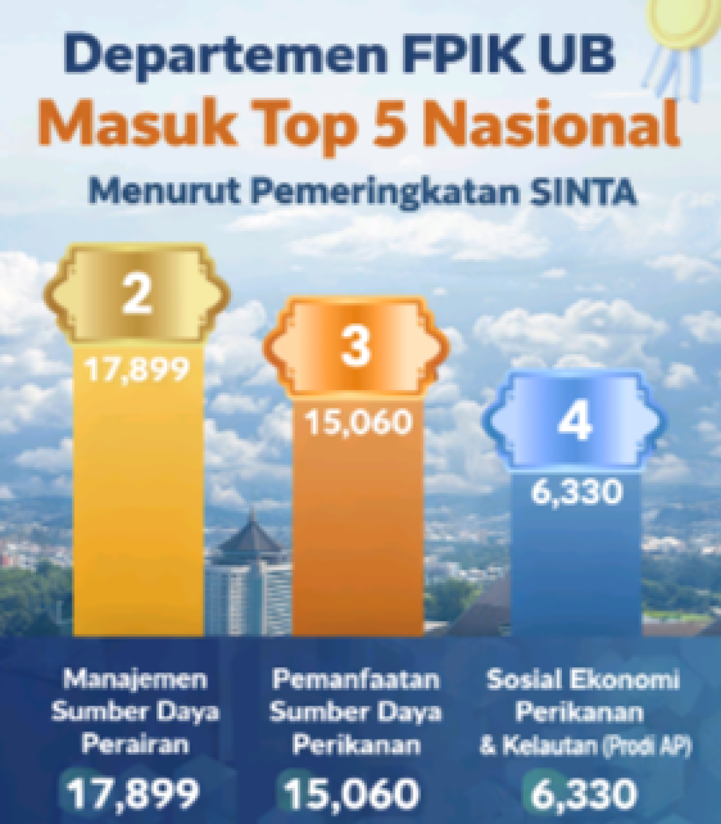 FAKULTAS Perikanan dan Ilmu Kelautan Universitas Brawijaya kembali menorehkan capaian membanggakan di tingkat nasional. Berdasarkan pemeringkatan SINTA (Science and Technology Index) yang dikelola oleh Kementerian Pendidikan Tinggi, Sains, dan Teknologi Republik Indonesia (Kemdiktisaintek RI), tiga departemen di lingkungan FPIK UB berhasil menempati posisi unggul pada bidangnya masing-masing.