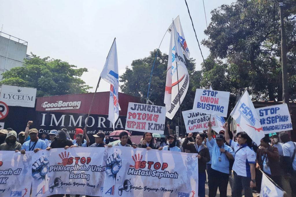 Ia menyebut persoalan bermula dari mutasi sepihak yang berujung pada PHK terhadap Ketua Pimpinan Unit Kerja (PUK) dan sejumlah pekerja lainnya.
