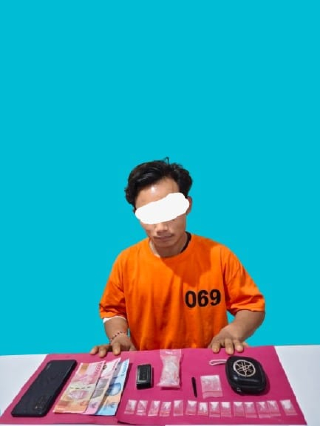 sini tim langsung bergerak cepat menggerebek rumah M A yang bersembunyi di kamar belakang. "Tersangka kami temukan di kamar belakang. Saat digeledah, barang bukti sabu ada di dalam dompet hitam miliknya," ujar IPTU Alex.