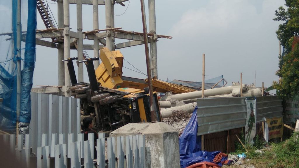 Saksi mata, Ita (40 tahun) di lokasi kejadian menceritakan, tiang beton dan mobil crane itu ambruk menimpa rumah tetangganya itu sekitar pukul 9.00 Wib.
