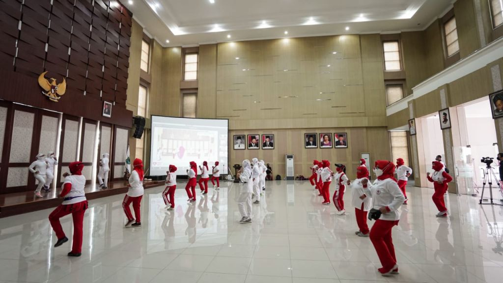 BATU (Realita)- Pemerintah Kota Batu bersama Yayasan Jantung Indonesia Cabang Malang Raya peringati Hari Ulang Tahun (HUT) Ke-20 Kota Batu dan Hari Jantung Sedunia dengan menggelar kegiatan senam bersama dan Webinar di Graha Pancasila Balaikota Among Tani, Sabtu (16/10/2021) pagi.