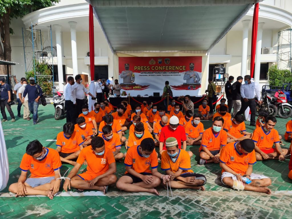"Dari hasil ungkapan yang hari ini di release, sejak bulan September hingga Oktober sebanyak 41 laporan polisi yang berhasil diungkap. Dengan tersangka sebanyak 49 orang yang tangkap oleh Reskrim Polrestabes Surabaya maupun jajaran Polsek Jajaran," ujarnya
