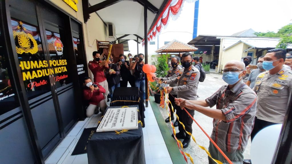 MADIUN (Realita) - Kapolres Madiun Kota, AKBP Dewa Putu Eka Darmawan melaunching secara langsung ruang pojok media di Mako Polres Madiun Kota, Jumat (22/10/2021).