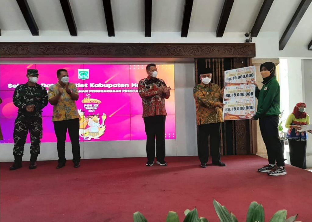 Reward tersebut diberikan langsung kepada para atlet oleh Bupati Malang, HM. Sanusi, dengan didampingi Wakil Bupati Malang Didik Gatot Subroto dan Ketua KONI Kabupaten Malang, di Pendopo Agung Kabupaten Malang, Jumat (22/10).