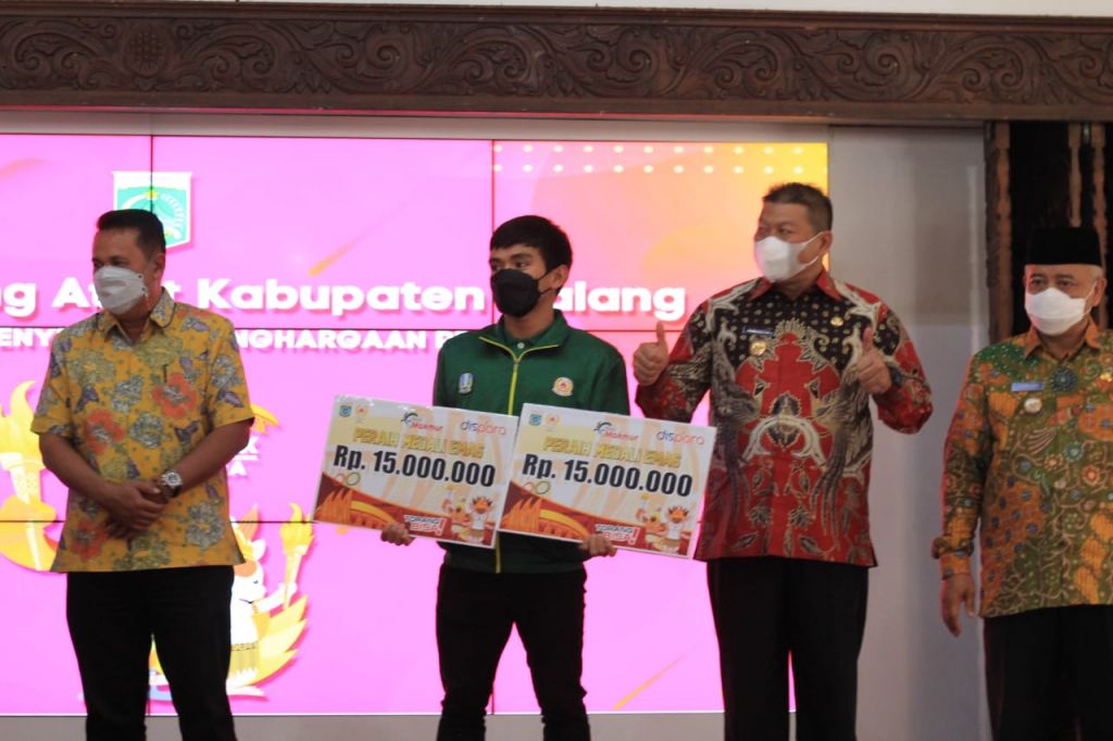 KABUPATEN MALANG (Realita)-Pemerintah Kabupaten (Pemkab) Malang memeberikan reward kepada sejumlah atlet peraih medali di Ajang PON XX Papua.