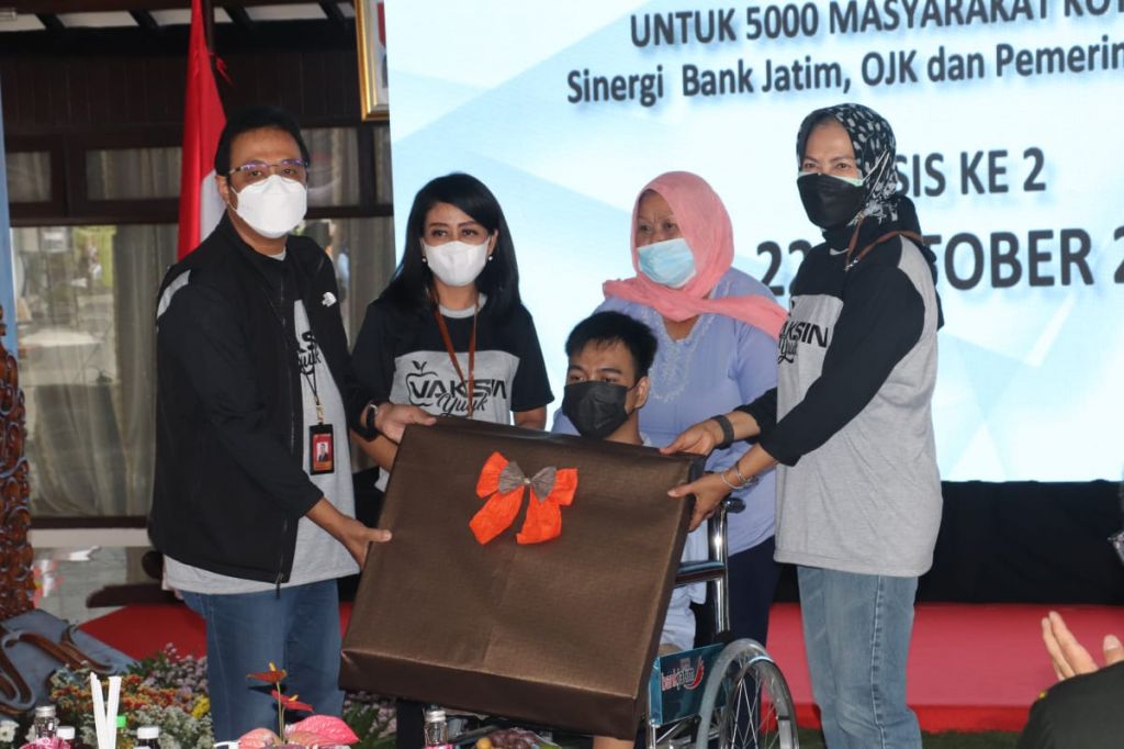 BATU (Realita)- Bank Jatim bersama Otoritas Jasa Keuangan (OJK) dan Pemerintah Kota Batu menggelar Vaksinasi massal untuk masyarakat kota Batu, sebagai upaya percepatan terbentuknya Herd Immunity (Kekebalan Kelompok) bertempat Di Rumdis Wali Kota, Jumat (22/10/2021).