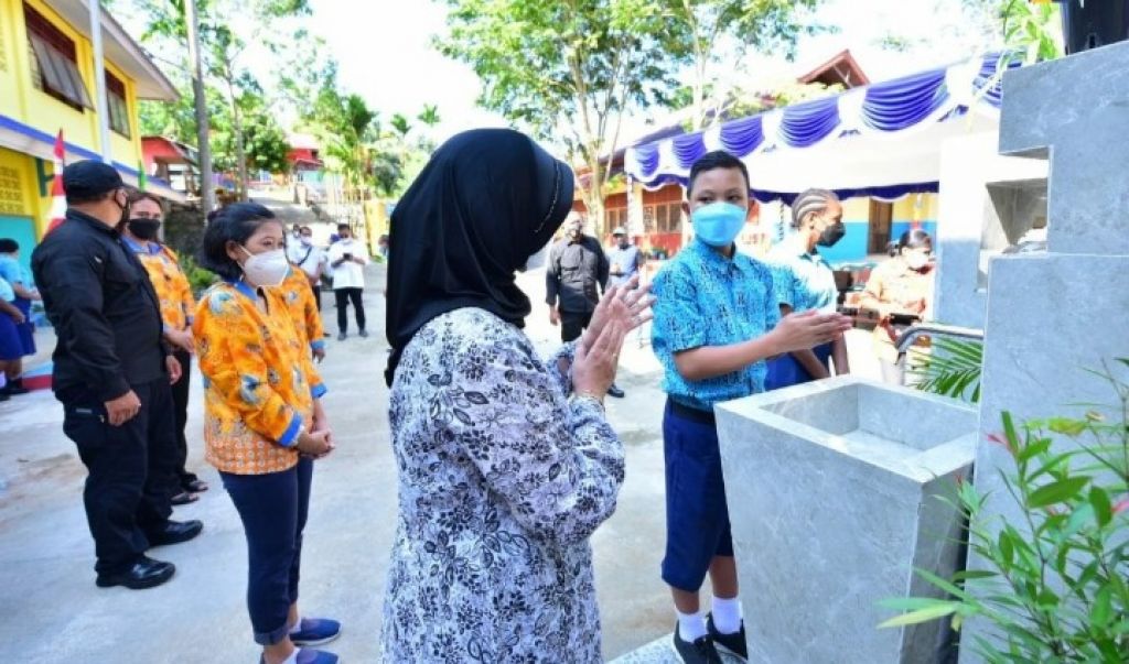 "Tolong dirawat dengan baik sarana cuci tangan yang telah diberikan. Semoga sarana ini bermanfaat untuk mendukung gerakan hidup sehat terutama di tengah Pandemi COVID-19 yang masih ada hingga saat ini," kata Indra Lestari.