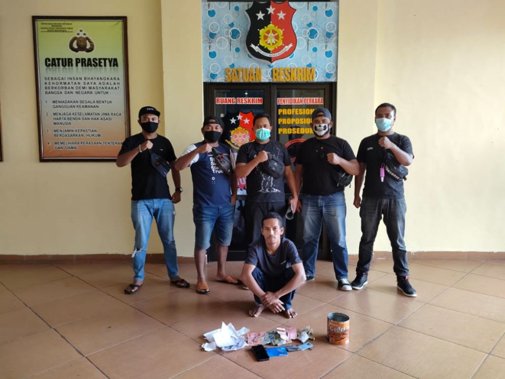 Sementara dari tangan B.H, pelaku judi Dingdong polisi menyita uang sebanyak enam ratus lima belas ribu rupiah (Rp.615.000), 1 buah HP merk Vivo warna hitam yang berisi angka angka dingdong, 1 buah Boks ikan yang digunakan pelaku sebagai meja untuk menyimpan HP dan uang taruhan tersebut.