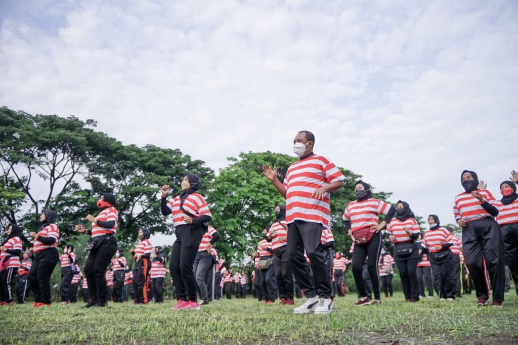 SURABAYA (Realita)- Wakil Wali Kota Surabaya, Armuji senam bersama 125 lansia se-Kecamatan Tandes di Taman Hutan Raya (Tahura) Pakal, Kecamatan Pakal, Sabtu pagi (13/11/2021). Kegiatan senam bersama yang digagas oleh Paguyuban Lansia tersebut juga diapresiasi langsung oleh Wawali Armuji.