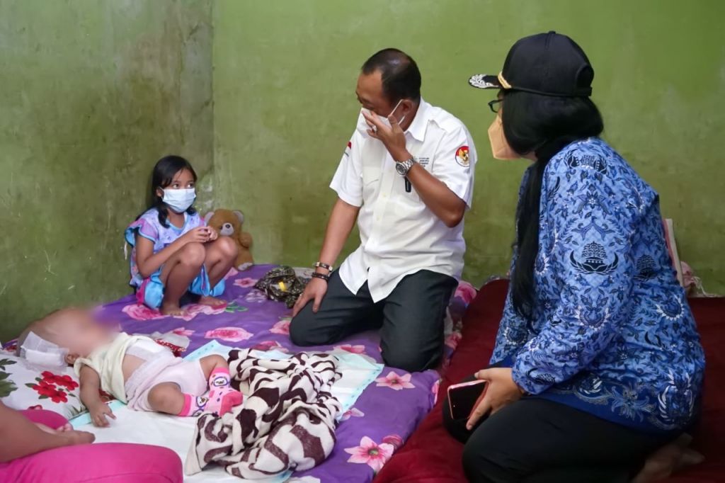 SURABAYA (Realita)- Wakil Wali Kota Surabaya, Armuji bersama Lurah dan Puskesmas Morokrembangan menilik kondisi terkini Elora, bayi pengidap hidrosefalus yang tinggal di Jalan Gadukan Baru Gang 1 / 227 A, Surabaya, Rabu (17/11/2021).