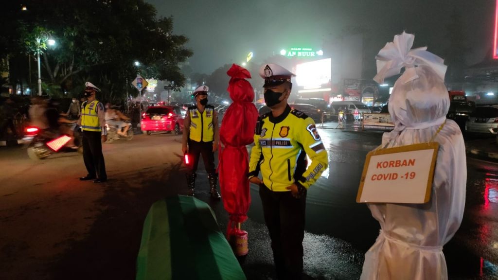 Kasatlantas Polres Batu, AKP Indah Citra Fitriani menjelaskan kegiatan teratrikal ini sebagai salah satu bentuk sosialisasi kepada masyarakat tentang Prokes dan disiplin berlalu lintas.