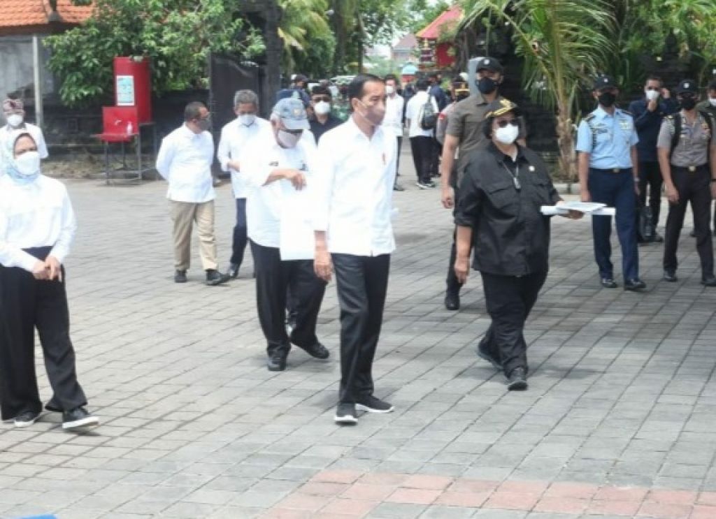 BALI - Presiden Joko Widodo (Jokowi) didamping Menteri Pekerjaan Umum dan Perumahan Rakyat (PUPR) Basuki Hadimuljono dan Menteri Lingkungan Hidup dan Kehutanan (LHK) Siti Nurbaya meninjau kawasan Rehabilitasi dan Konservasi Hutan Mangrove Tahura Ngurah Rai, di Denpasar Bali, Kamis (2/12/2021). Peninjauan lapangan dilakukan untuk mematangkan kesiapan titik showcase Konservasi Mangrove yang direncanakan untuk menjadi salah satu agenda dalam KTT G-20 tahun 2022 yang akan datang di Provinsi Bali.
