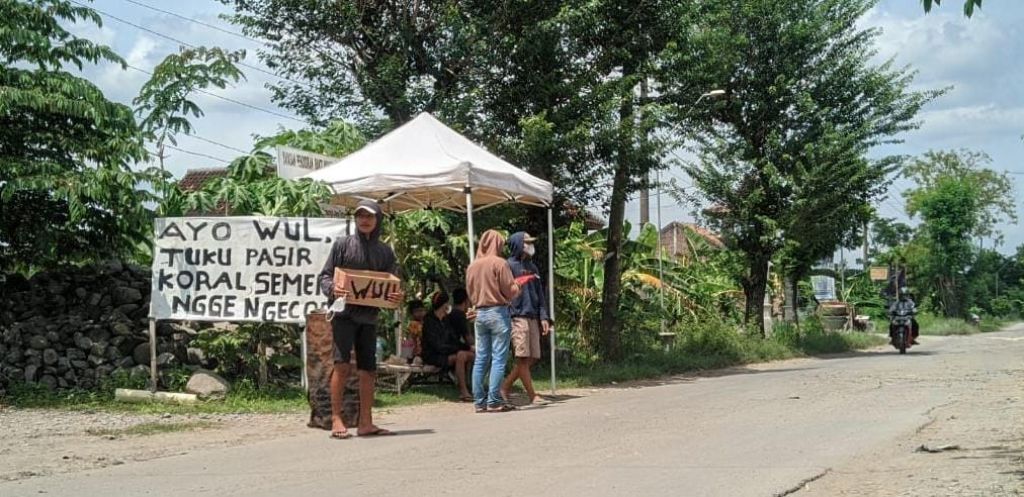 Warga yang prihatin atas kondisi jalan Golan-Kerun Ayu ini pun berinisiatif menggalang dana sumbangan, yang dihimpun dari pengendara yang lewat.