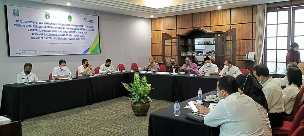 Dalam Rapat Koordinasi dan Sinkronisasi Implementasi Inpres No.2/2021 dan Pergub Jatim No.36/2021 pada Rabu (15/12/2021) ini, Trioki Susanto selaku Kepala Kantor BPJS Ketenagakerjaan Pasuruan menyampaikan, setiap orang berhak mendapatkan perlindungan dan jaminan sosial dari negara tanpa terkecuali. Jaminan sosial adalah salah satu bentuk perlindungan sosial untuk menjamin seluruh rakyat agar dapat memenuhi kebutuhan dasar hidup yang layak.