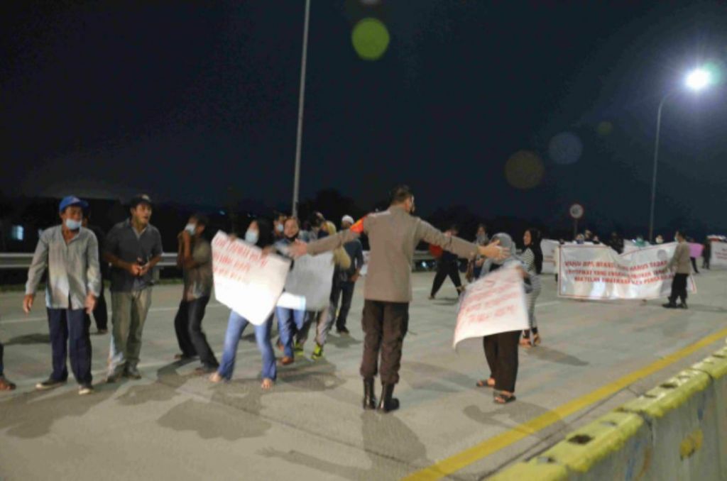 "Hari ini mereka berunjuk rasa dipinggiran jalan tol, mengambil satu lajur, kami jaga mereka, berkoordinasi dan bekerjasama agar tidak menutup jalan tol ini kemudian juga karena saat ini masih pandemik, mereka juga kita arahkan, kita galang supaya tetap menggunakan masker dan menjaga jarak," kata Aloysius.