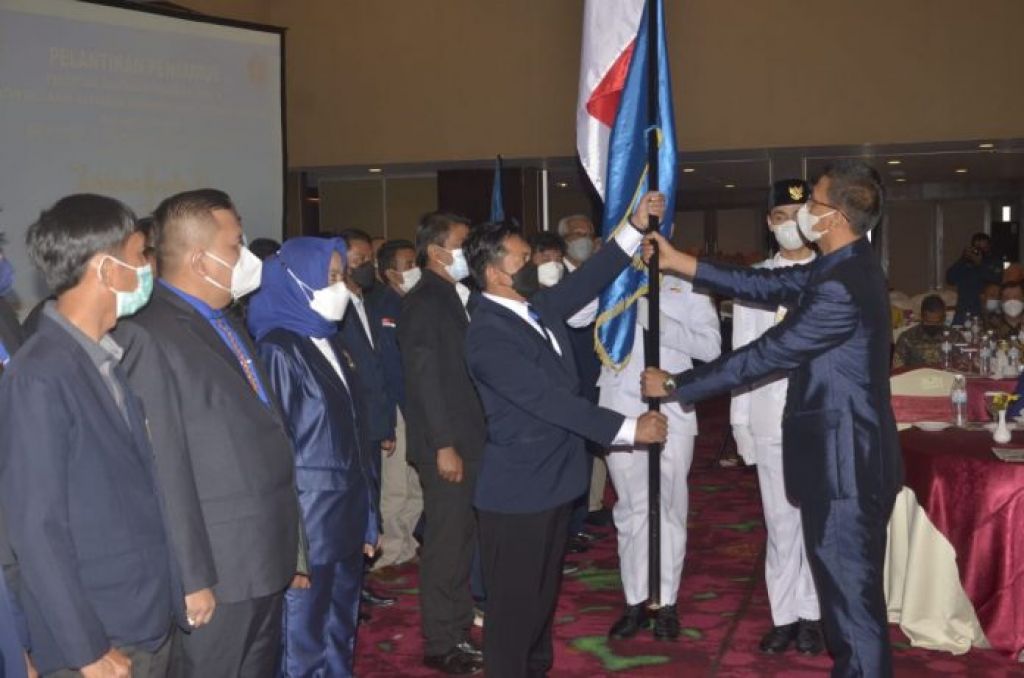 Pelantikan ditandai dengan penyerahan bendera pataka oleh Ketua PWI Provinsi Lampung, Wira Hadikusumah, didampingi
