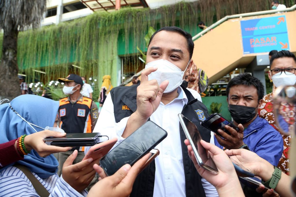 SURABAYA (Realita)- Wali Kota Surabaya Eri Cahyadi mendampingi Menteri Koordinator Perekonomian Republik Indonesia (RI) Airlangga Hartarto, melakukan pengecekan stabilitas harga kebutuhan pokok di pasar, khususnya minyak goreng. Tinjauan kali ini berlangsung di Pasar Wonokromo Kota Surabaya, Kamis (13/1/2022).