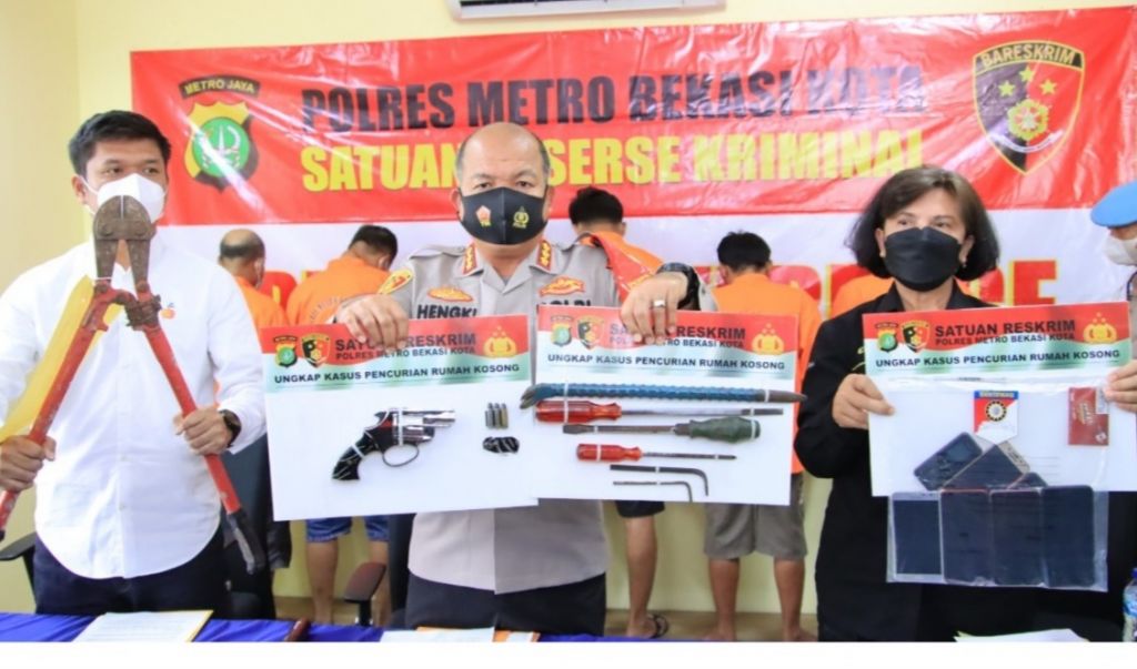 "Kita reskrim metro Bekasi kota mengungkap Sembilan laporan polisi yaiu kasus-kasus pencurian rumah ksoong yang dilakukan oleh kelompok, kita sudah mengamankan 6 tersangka dari 9 laporan yang ada," ujar Kombes Pol. Hengki selaku Kapolres Bekasi Kota, Rabu (19/1/2022).