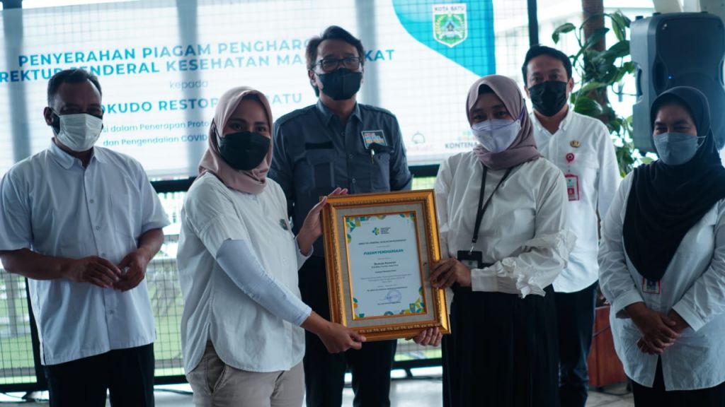 BATU (Realita)- Batu sebagai kota pariwisata, salah satunya Shokudo Restoran Kontena Hotel mendapatkan penghargaan dari Direktur Jenderal Kesehatan Masyarakat Kemenkes RI atas prestasinya dalam penerapan protokol kesehatan, pencegahan dan pengendalian Covid-19 Tahun 2021.
