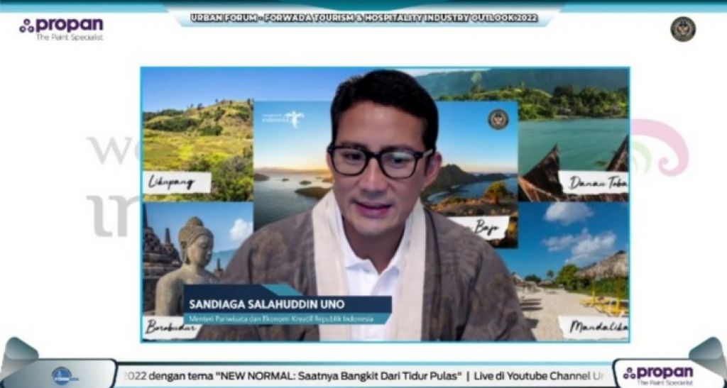 “Di tengah pandemi ini, terdapat secercah harapan yaitu tingginya antusiasme wisatawan nusantara yang menjadi roda penggerak geliat sektor pariwisata dan ekonomi kreatif saat ini,” ujar Menparekraf Sandiaga S Uno dalam Diskusi virtual Urban Forum - Forum Wartawan Daerah (FORWADA), Tourism & Hospitality Outlook 2022 “New Normal Saatnya Bangkit dari Tidur Pulas”, Kamis,(20/1/2022).