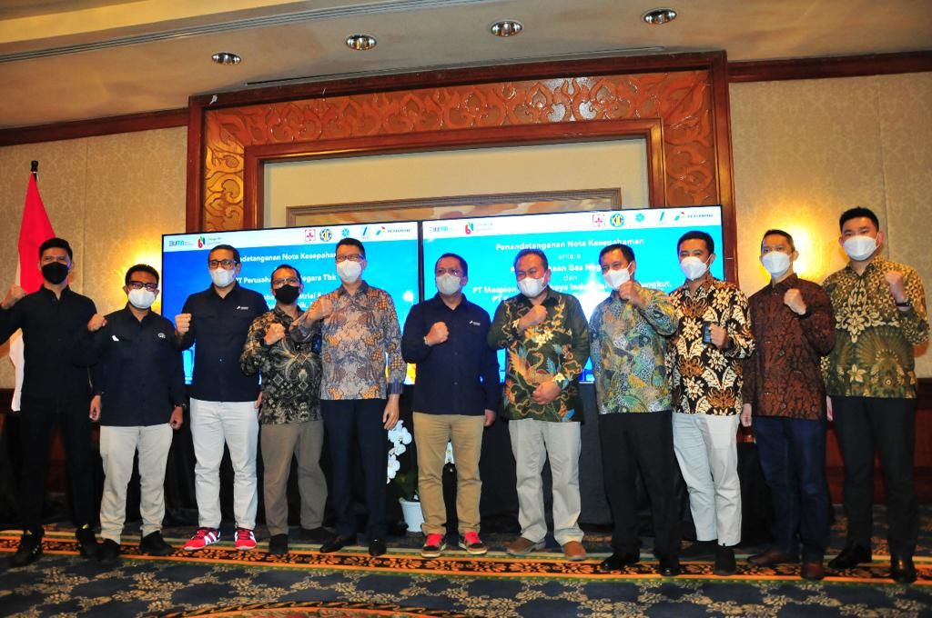 SURABAYA(Realita)-PT PGN Tbk sebagai Subholding Gas Pertamina melakukan penandatanganan Memorandum of Understanding (MoU) & Head of Agreement (HOA) (Perjanjian) kerjasama bisnis gas bumi, penyediaan pasokan dan infrastruktur gas bumi untuk kawasan industri di Jawa Timur, (27/01/2022).