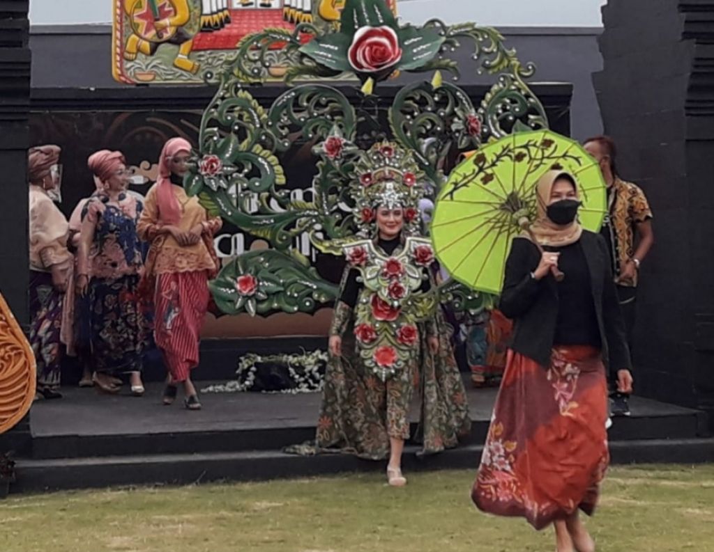 Momen ini dimangfaatkan Wali Kota Batu, Hj. Dewanti Rumpoko untuk ikut serta ambil bagian menjadi model layaknya seorang pragawati profesional berlenggak lenggok di panggung Sendratari Arjuna Wiwaha dengan memamerkan kain batik khas Batu dan stelan blazer kepada undangan yang hadir.
