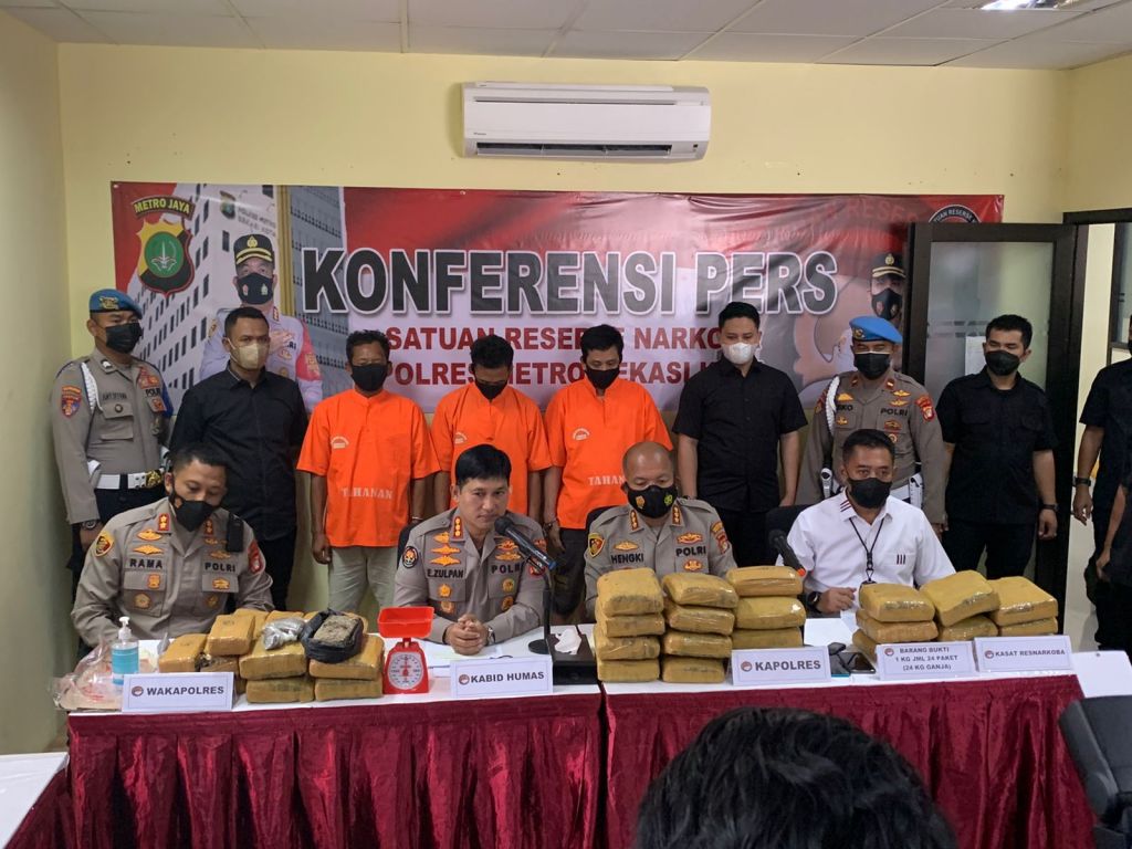 Kabid Humas Polda Metro Jaya Kombes Pol. Hendra Zulpan didampingi Kapolres Metro Bekasi Kota Kombes Pol. Hengki, S.I.K., M.H, Wakapolres AKBP Rama S. Putra, S.I.K, M.H, M.Si bersama AKBP. Guntur Nugroho Kasat Narkoba Polres Metro Bekasi Kota dalam keterangannya, mengatakan sekitar Senin (24/1/2022) sekira pukul 09.00 WIB anggota Subnit 4 unit 2 mendapat informasi dari sumber yang dapat dipercaya bahwa di wilayah Jatibening Pondok Gede, Kota Bekasi sering terjadi transaksi narkoba, selanjutnya anggota penyelidikan hingga mendapatkan data pelaku dan dapat berkomunikasi melalui informan.