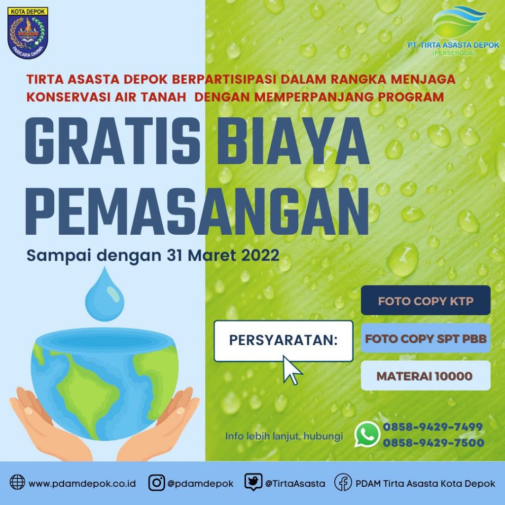DEPOK (Realita)- PT. Tirta Asasta Depok kembali memperpanjang program promo gratis penyambungan baru.