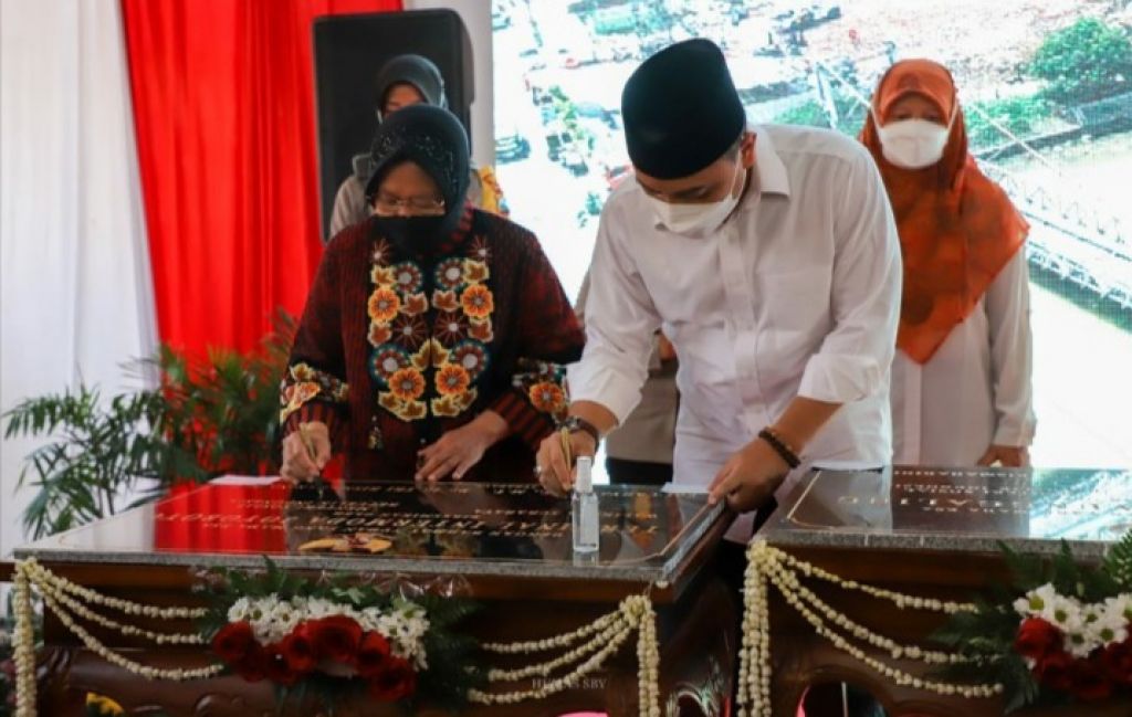 SURABAYA (Realita)-Wali Kota Surabaya, Eri Cahyadi meresmikan Jembatan Sawunggaling dan Terminal Intermoda Joyoboyo (TIJ) yang terkoneksi dengan Kebun Binatang Surabaya (KBS), Sabtu (1/5/2021). Jembatan ini menghubungkan frontage road sisi barat Jalan Raya Wonokromo dengan Jalan Gunungsari. Peresmian jembatan inipun dihadiri langsung oleh Menteri Sosial Republik Indonesia (RI), Tri Rismaharini.