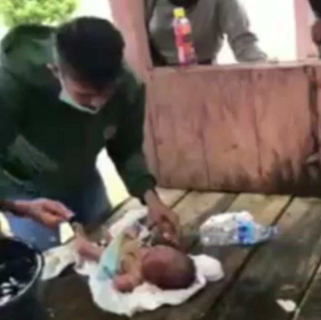Saat itu wiki melakukan pertolongan pertama dengan cara membersihan seluruh badan bayi, seorang warga memberikan bajunya untuk mengahangatkan bayi.