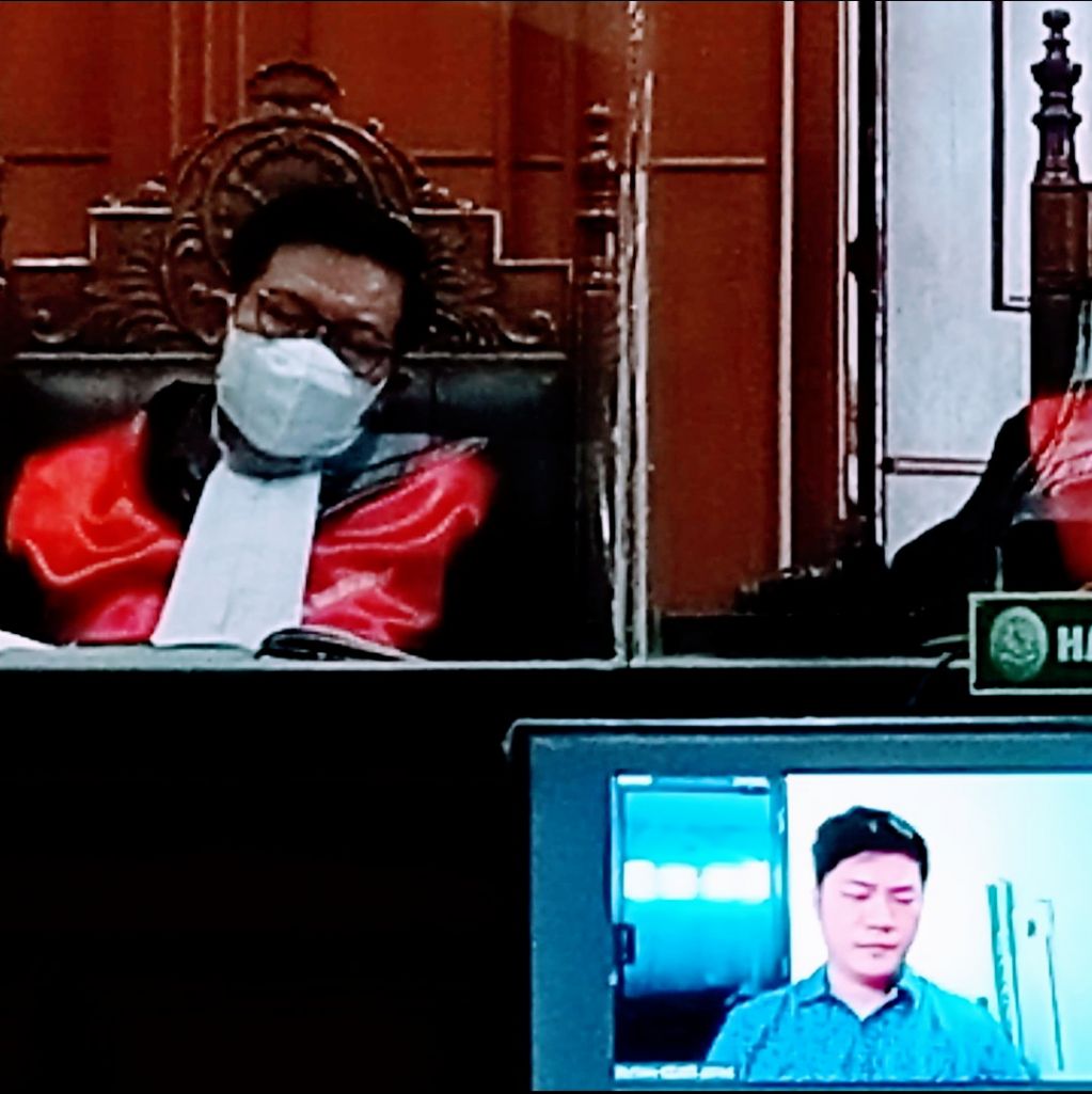 SURABAYA (Realita)-Hakim Erintuah Damanik tertidur saat sidang. Dia tidur saat ketua majelis Suparno memeriksa perkara pajak dengan terdakwa Sugandi Gunadi di Pengadilan Negeri (PN) Surabaya, Selasa (15/3/2022).