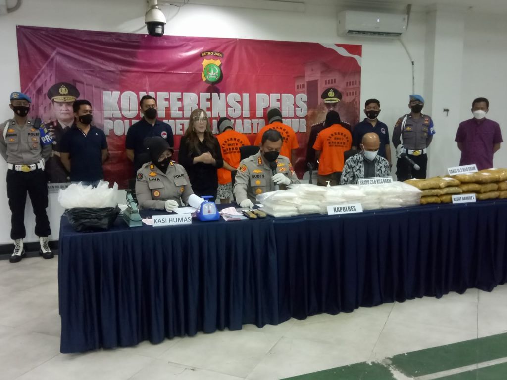 JAKARTA (Realita)- Kapolres Jakarta Timur Kombes Pol. Budi Sartono didampingi AKBP. Dr Agung Wibowo selaku Kasat Narkoba, bersama AKP. Lina Yuliana Kasie Humas Polres Metro Jakarta Timur mengadakan presscon di lantai enam gedung Mapolres Metro Jakarta Timur.
