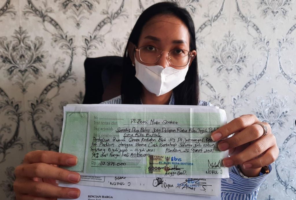 Kuasa Hukum NJ, Inge Novita Dyastari mengatakan, awal mula kliennya membeli rumah subsidi di Perumahan Green Kedaton di Desa Jatimongal, Kecamatan Wungu, Kabupaten Madiun dengan cara cash tempo. Harga yang disepakati sebesar Rp 132,6 juta. Selanjutnya NJ melakukan pembayaran kepada PT Bumi Nusa Sentosa melalui karyawanya dengan tiga tahap. Pertama senilai Rp 5 juta. Kemudian Rp 18 juta, dan sisanya Rp 112,875.000 dibayarkan pada 26 Maret 2021.