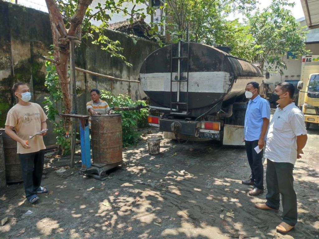 Toko Setia Jaya mendapat pasokan 30 drum minyak goreng curah subsidi. Tiap drum berisi 180 kilogram minyak goreng curah.