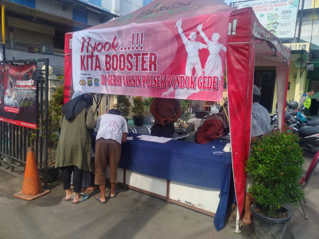 "Kita membuka layanan Vaksinasi Booster Merdeka sebanyak delapan titik gerai Vaksin yang tersebar di masing- masing wilayah Kecamatan Pondok Gede dan Kecamatan Pondok Melati," ujar Kompol. Puji Hardi selaku Kapolsek Pondok Gede, Selasa (5/4/2022).