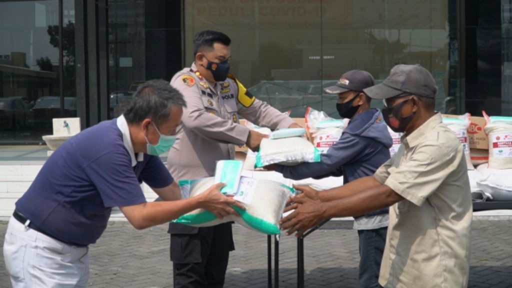 Kegiatan Bantuan Sosial Peduli Covid-19 dengan tema "Untukmu Negeri, Kami Berbakti dan Peduli", ditandai dengan penyaluran bantuan kepada masyarakat oleh Wakapolresta Sidoarjo AKBP Deny Agung Andriana.