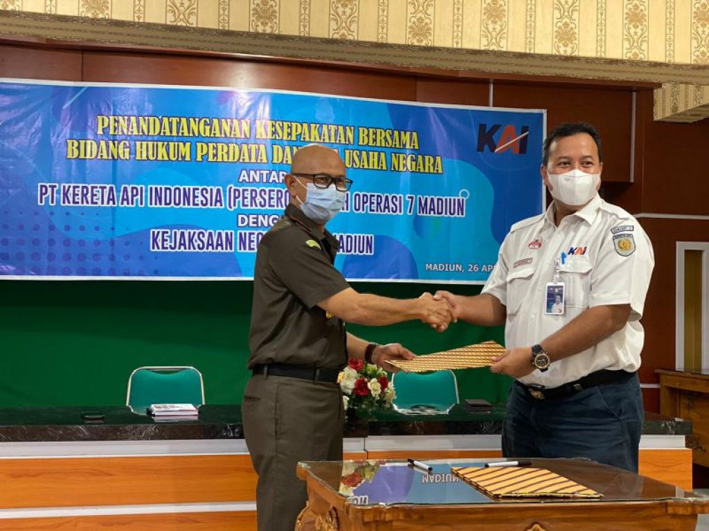 MADIUN (Realita) - Kejaksaan Negeri (Kejari) Kota Madiun dan PT KAI Daop 7 Madiun melakukan kerjasama bidang hukum perdata dan tata usaha negara (TUN).