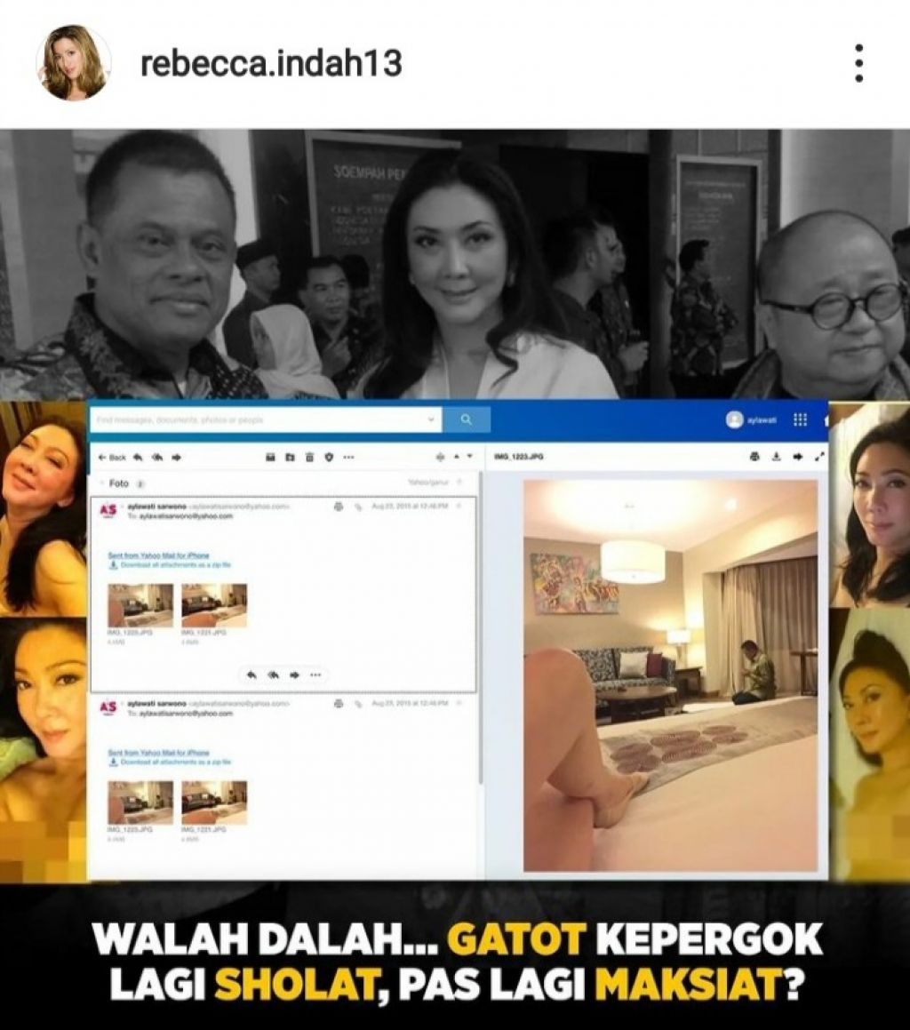 Belum jelas memang kebenaran postingan @rebecca.indah13. Karena hingga kini belum ada tanggapan dari Aylawati Sarwono maupun Gatot Nurmantyo.reb