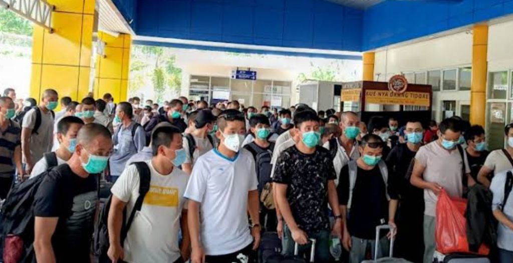 Adapun WNA asal China tiba di Tanah Air dengan menggunakan pesawat China Soutern Airlens CZ387 dari Guangzhou pada pukul 05.00 WIB.